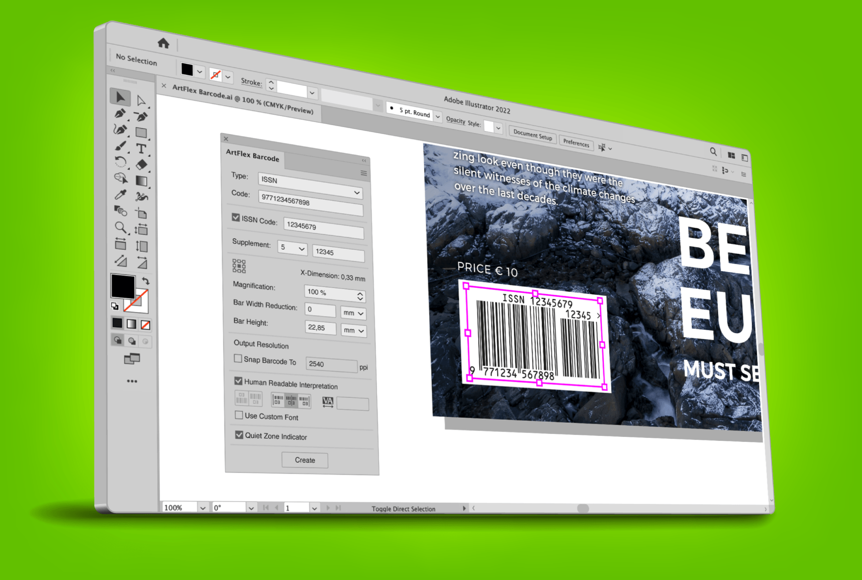 Designed to create barcodes quickly and easily with Adobe Illustrator and InDesign on macOS and Windows platforms, ArtFlex Barcode ends the timewasting chore of switching between applications. With ArtFlex Barcode, you can create any of a wide range of barcode types directly in your document.